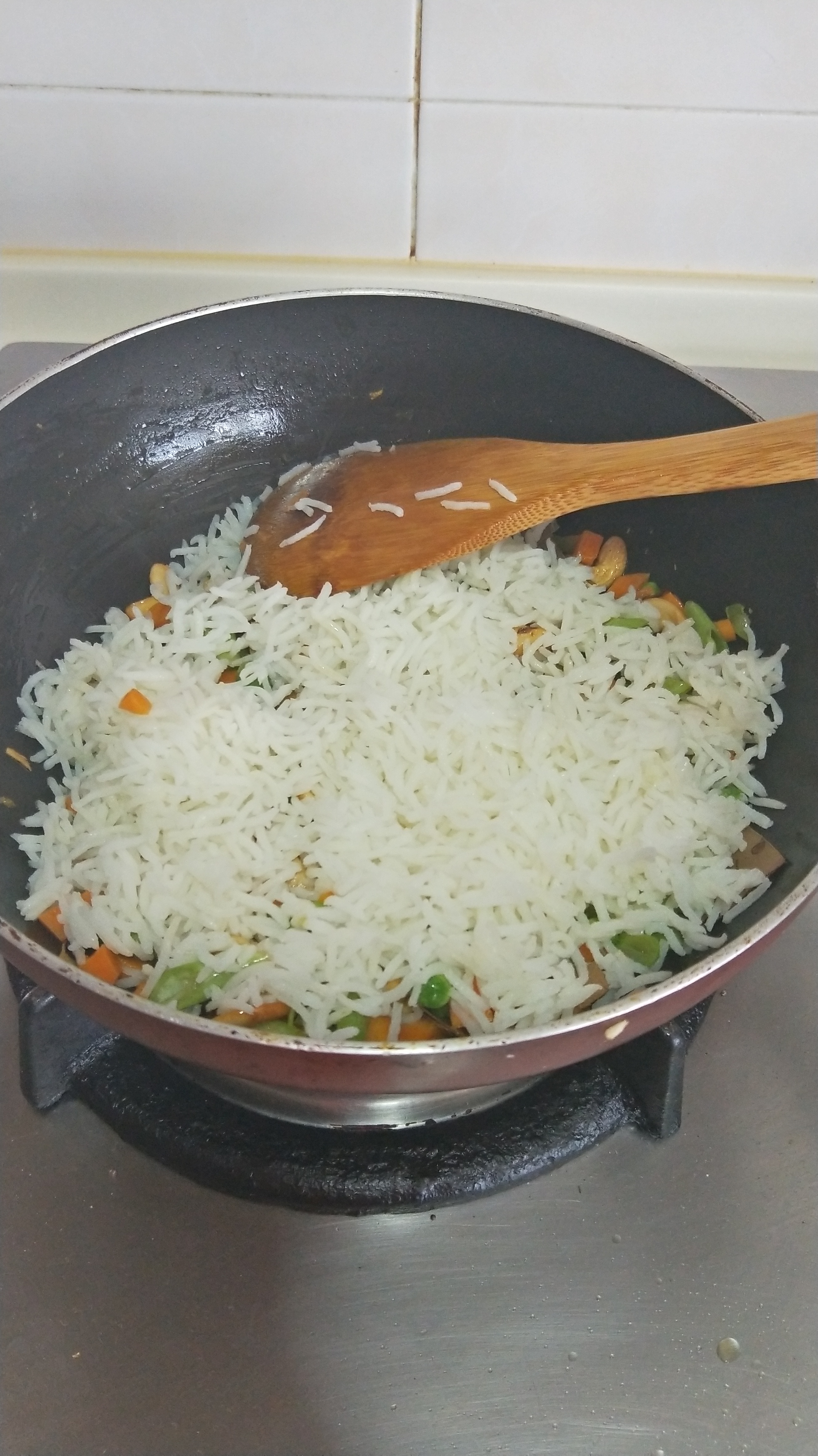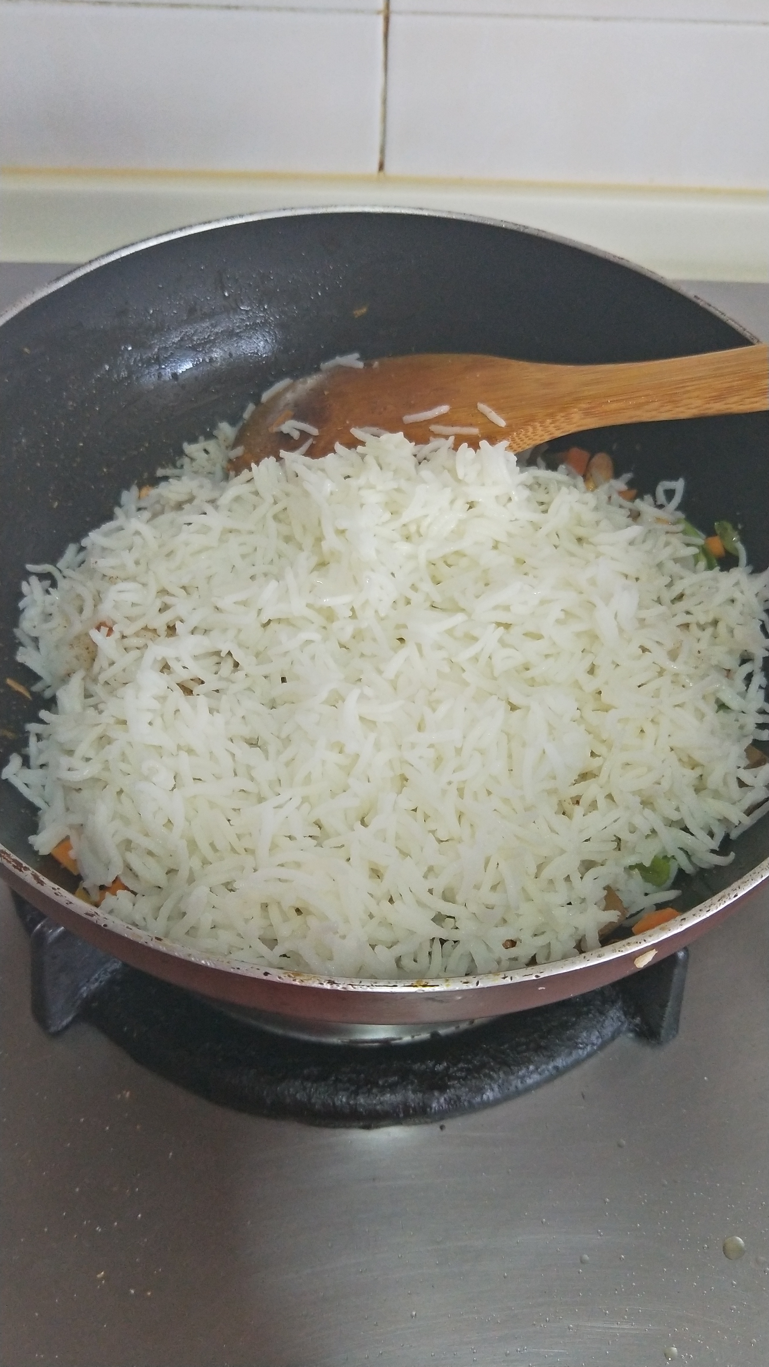The Bengali Polao and fried rice are two different things. Polao is made with Gobindobhog rice, a fragrant short-grained rice and goes by names like Sweet Pulao, Basanti Pulao and Mishti Pulao. But this vegetable fried rice or vegetable Pulao is a wedding special and uses Basmati. Made with fresh veggies and crunchy nuts, it is served at Bengali weddings with fish fry, and fish Kalia.