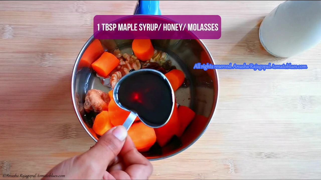 If your carrots are super sweet, I strongly recommend skipping sugar or any other sweetener. But in case, the carrot Gods don’t smile on you and you are left with bland as sawdust kinds, then use organic maple syrup or jaggery or honey or even agave. Please note that adding honey will make it non-vegan.