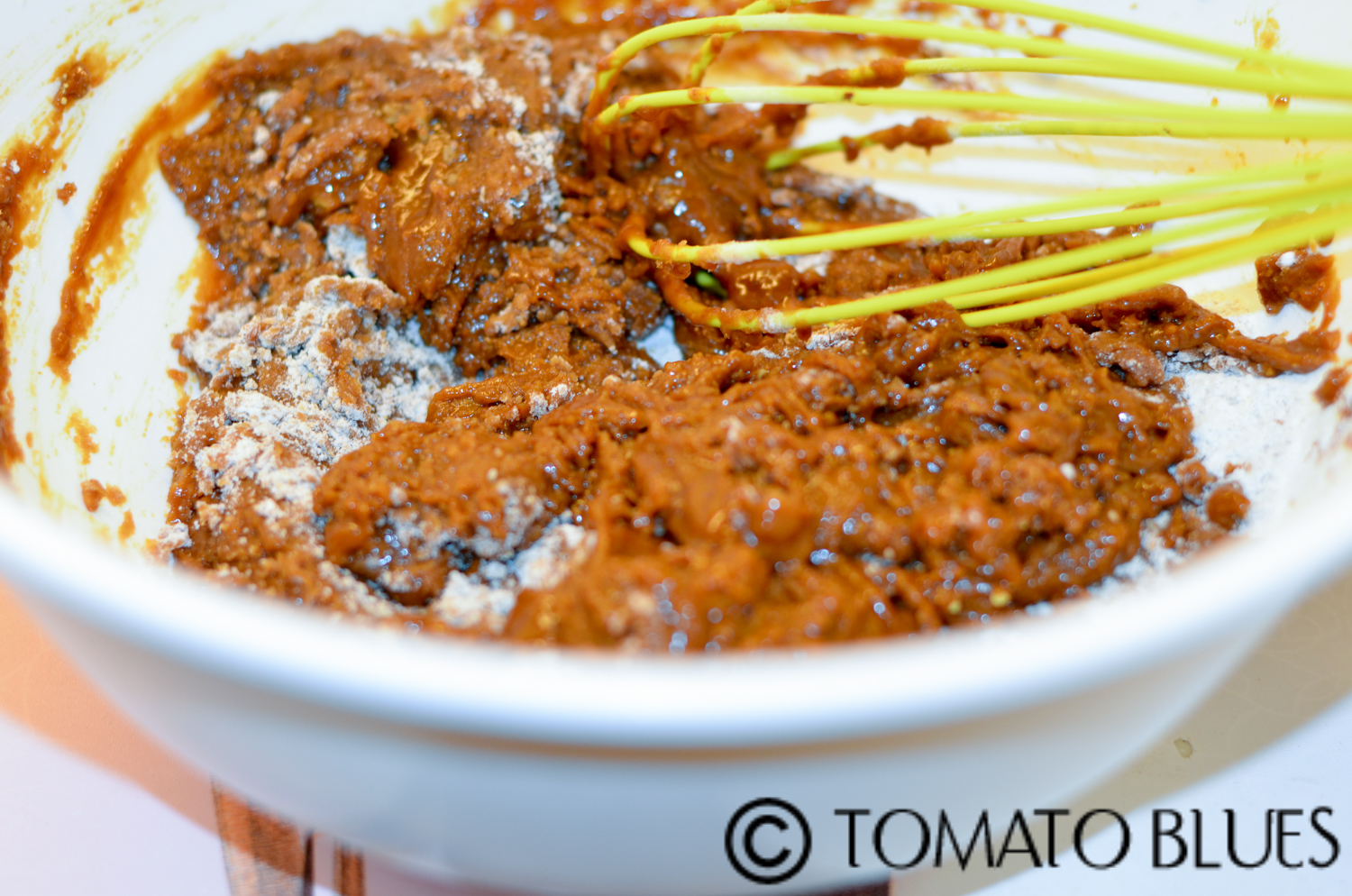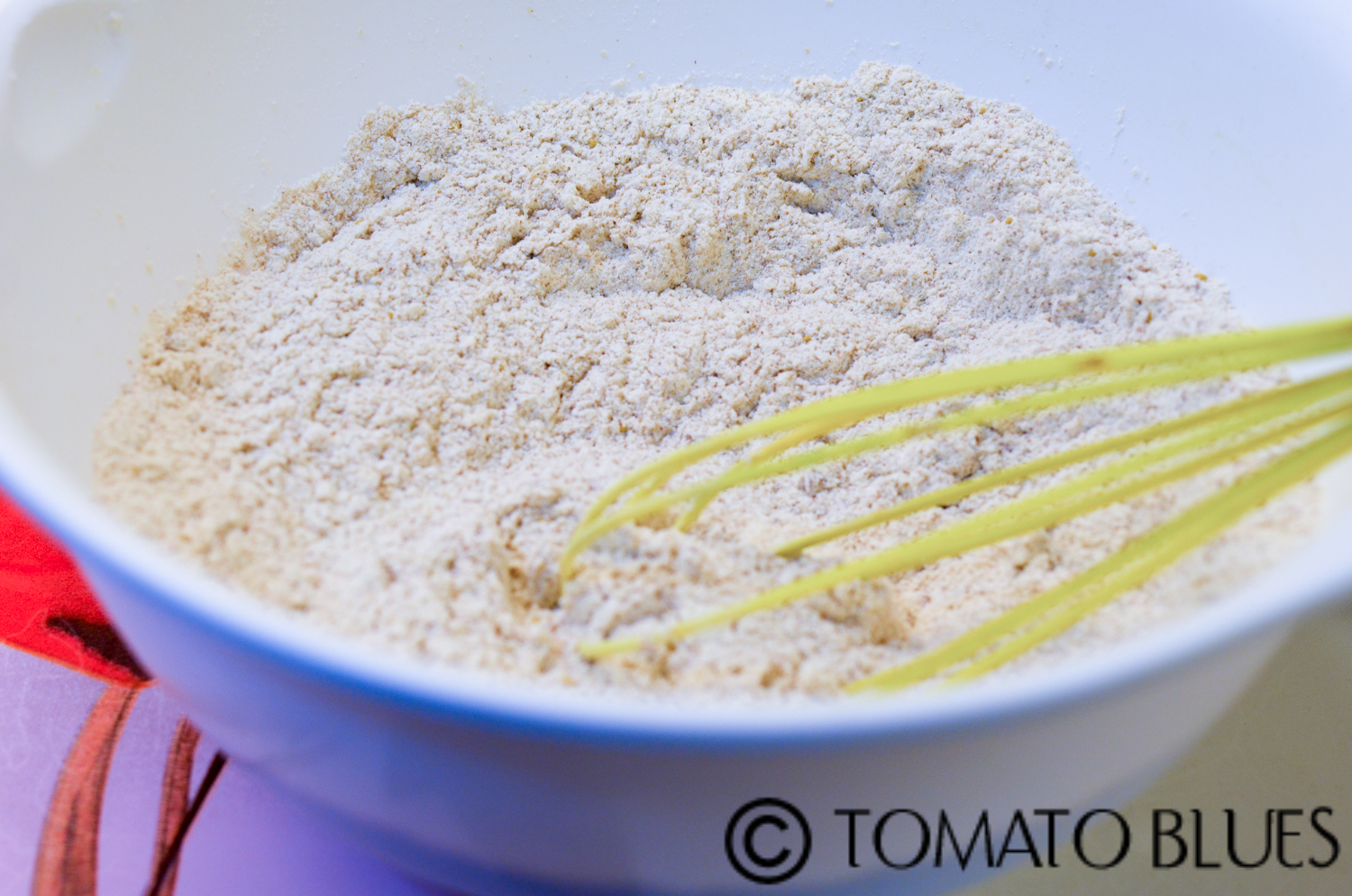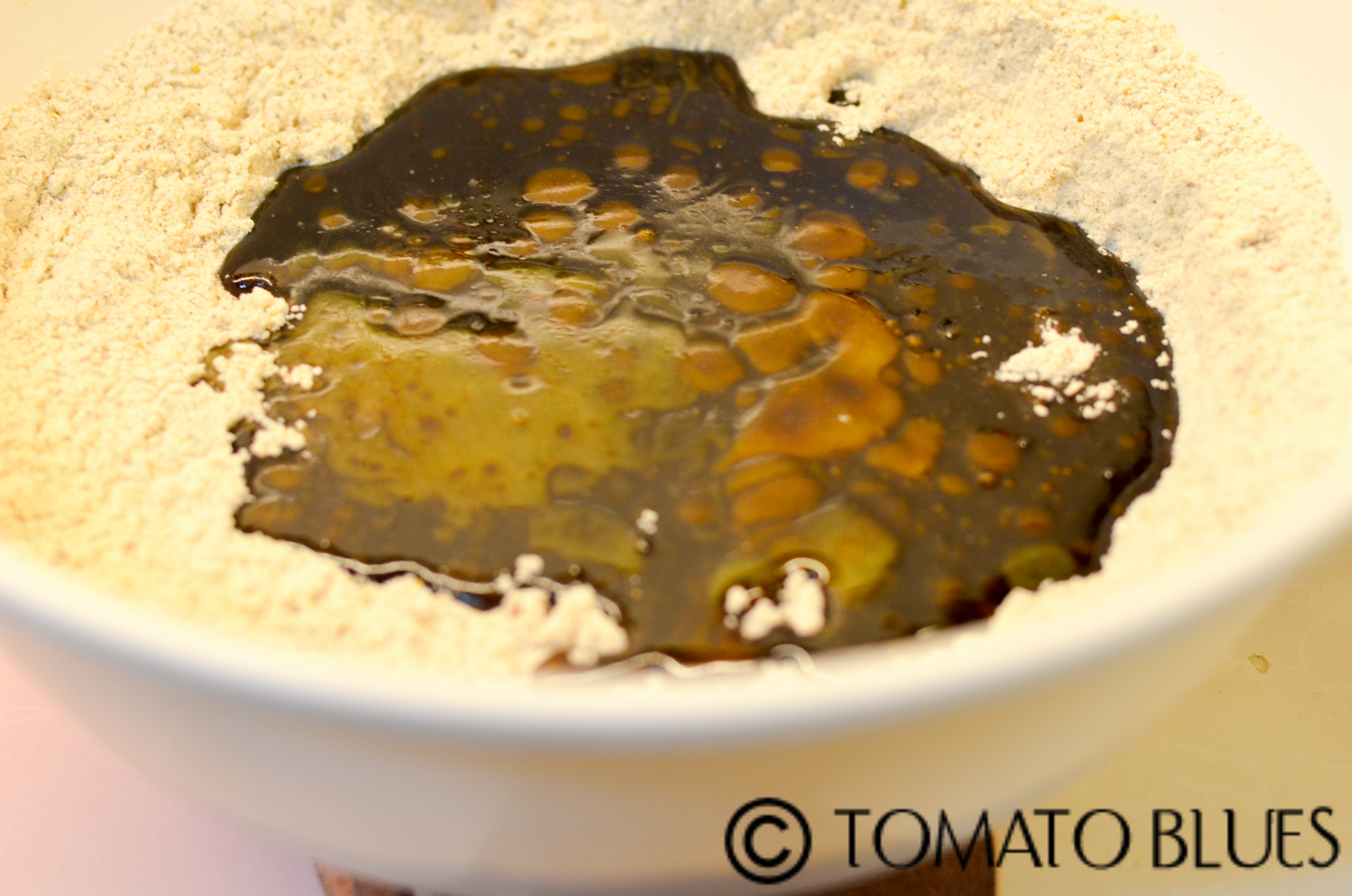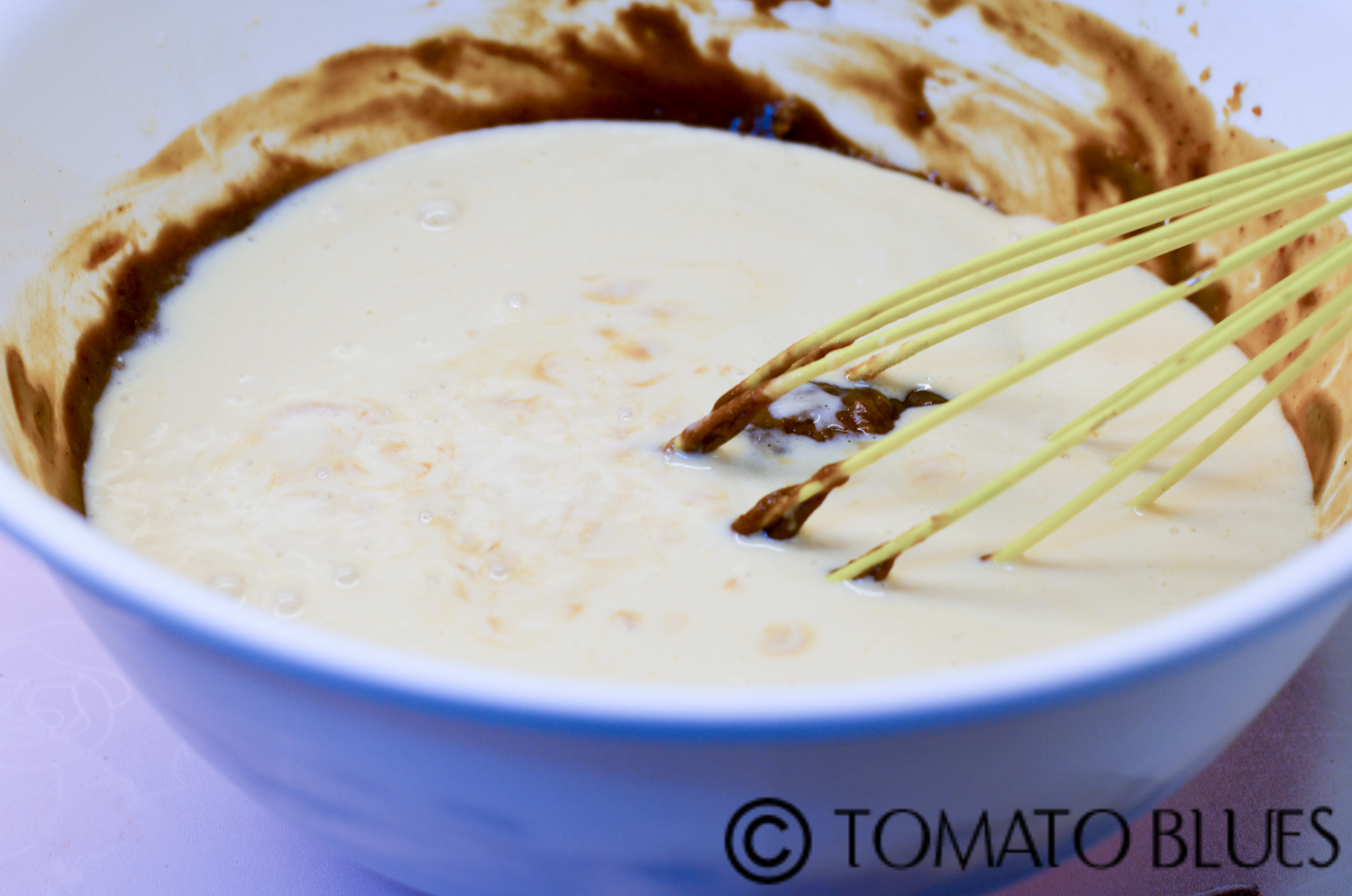 - Add this mixture to the dry mixture. Mix well using a whisk.