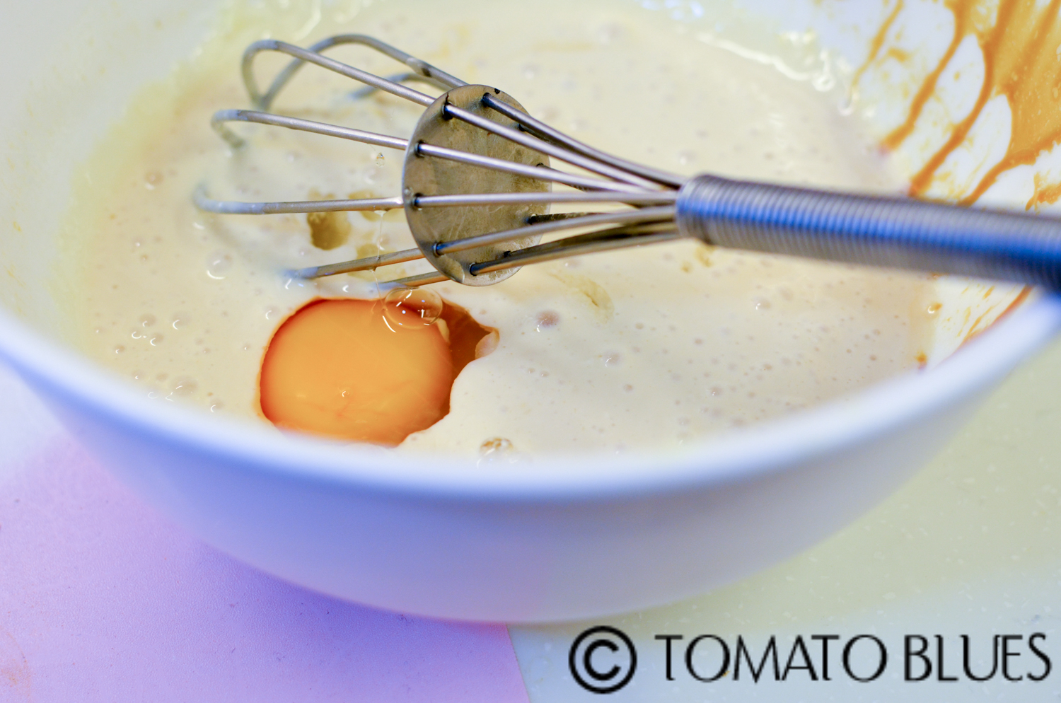 - Add this egg mixture to the batter and mix well using a whisk.