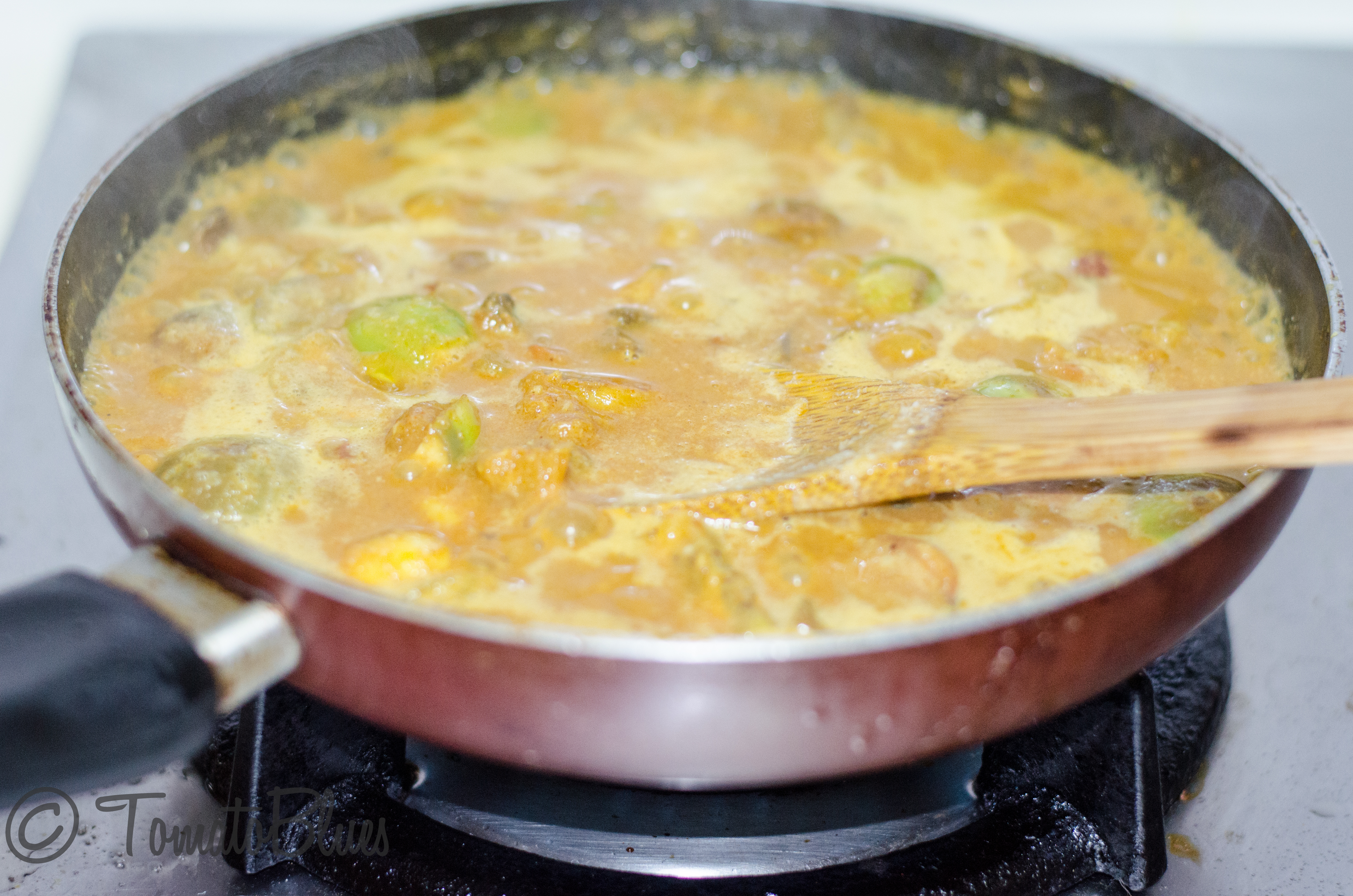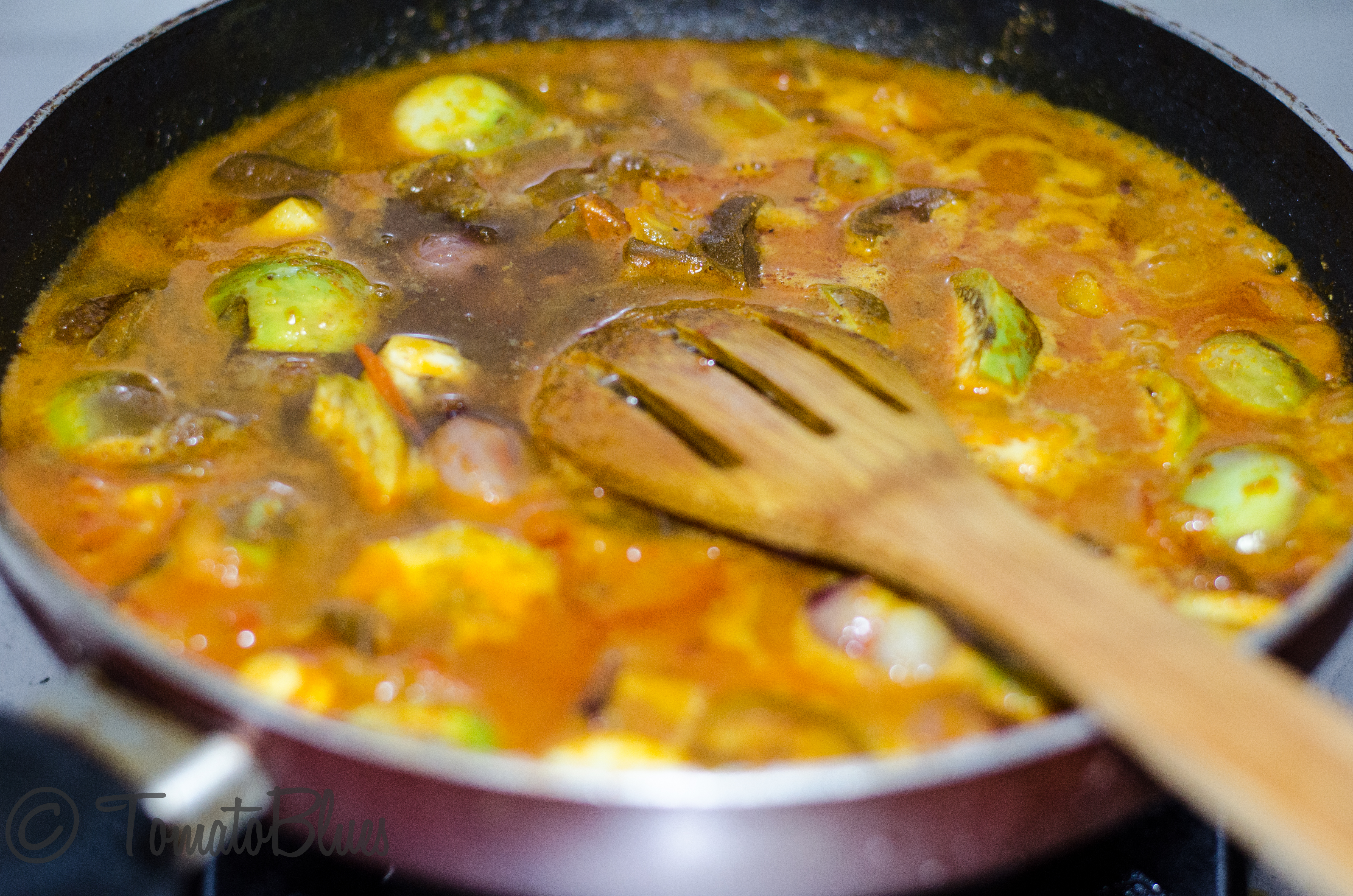 - Simmer till kuzhambu thickens. Once done , switch off flame.