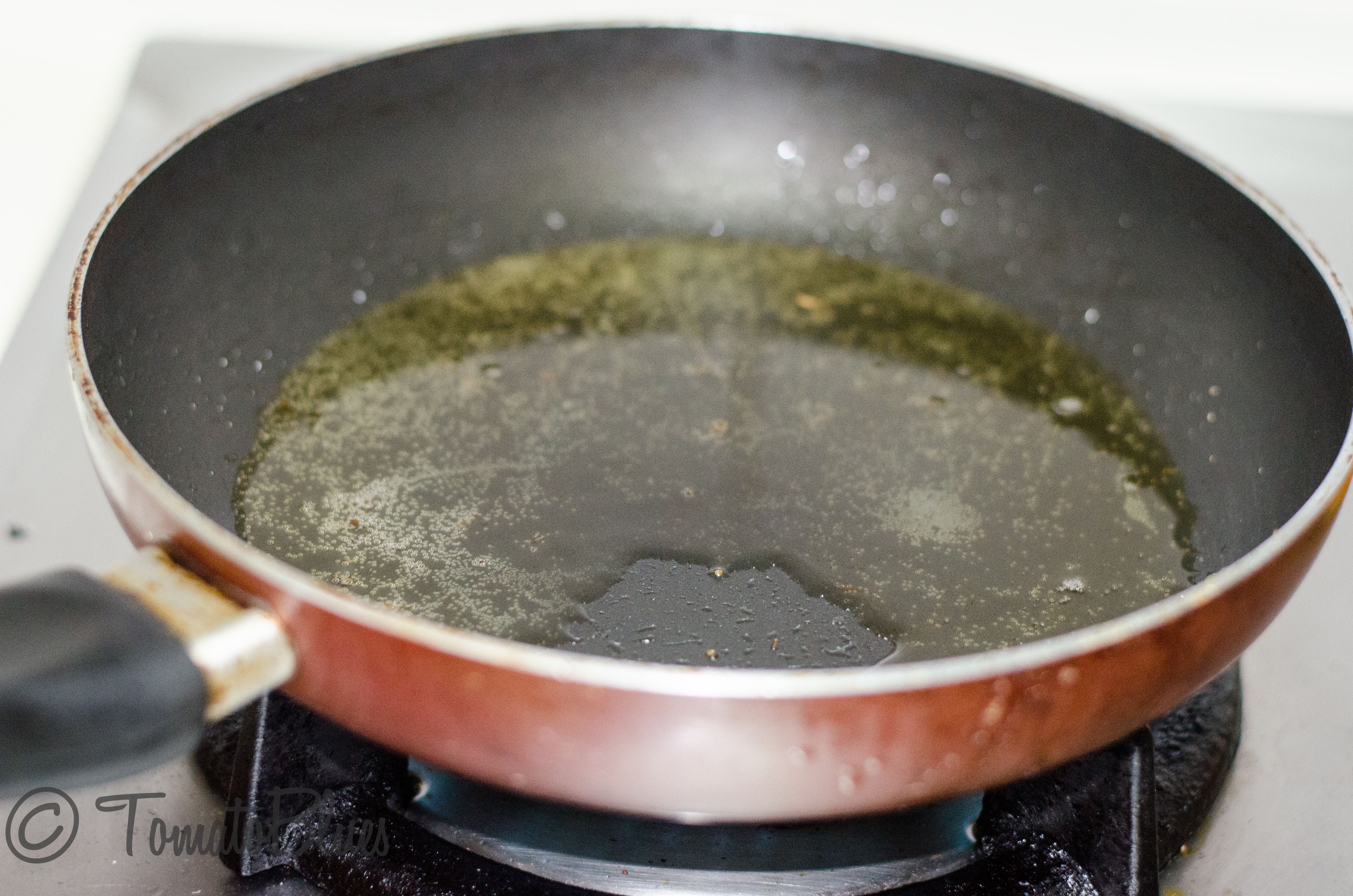 - Heat a small pan with sesame oil. Add mustard seeds and allow to pop.