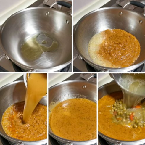 Similarly, you can also air-fry the Pooris to reduce hands-on time. Or you can fry them and store them in an air tight box. Or better yet, simply buy readily available Pooris and proceed with the recipe.