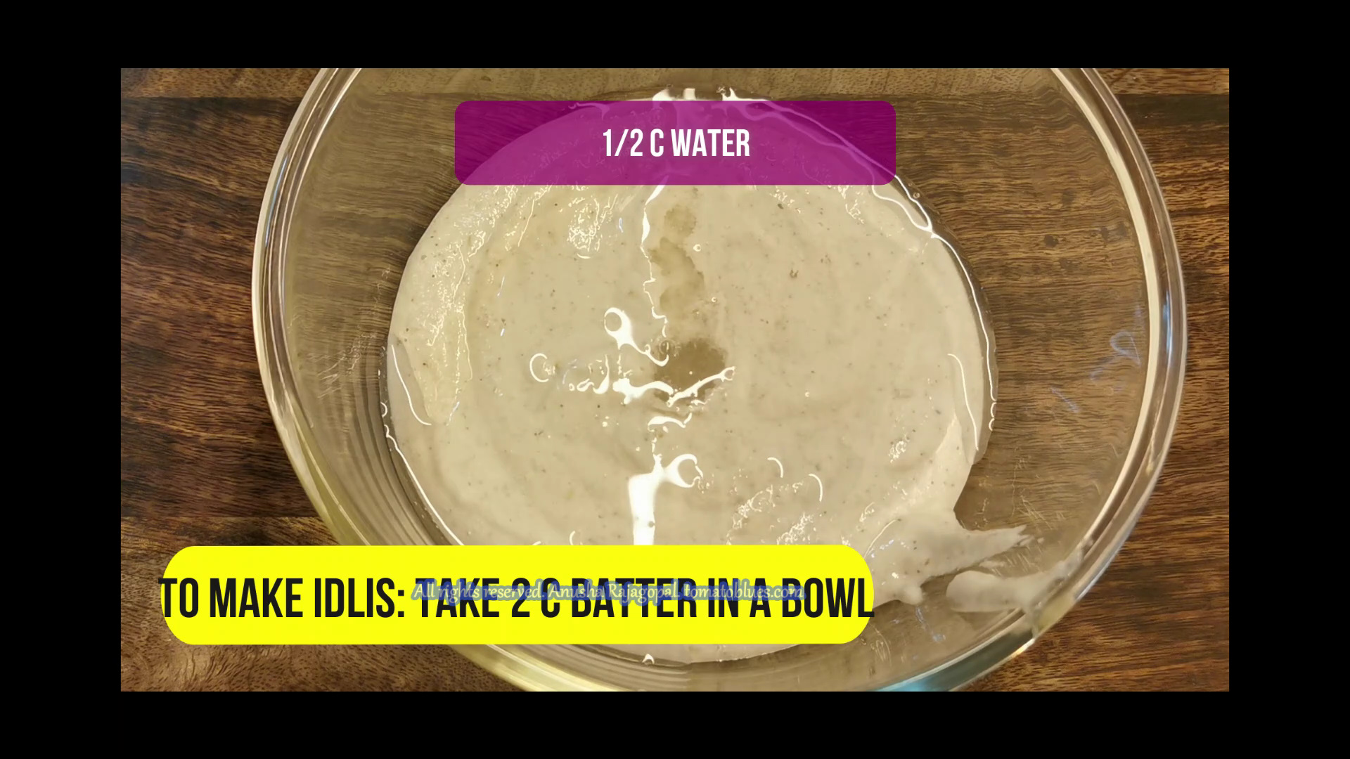 Your batter will be thicker than when you ground it. This s because millet absorbs water. So, to make idlis, we have to adjust the consistency of the batter. Add 1/2 c water to 2 c batter. Mix well. When you pour the batter from a ladle, it should fall easilyand uniformly.