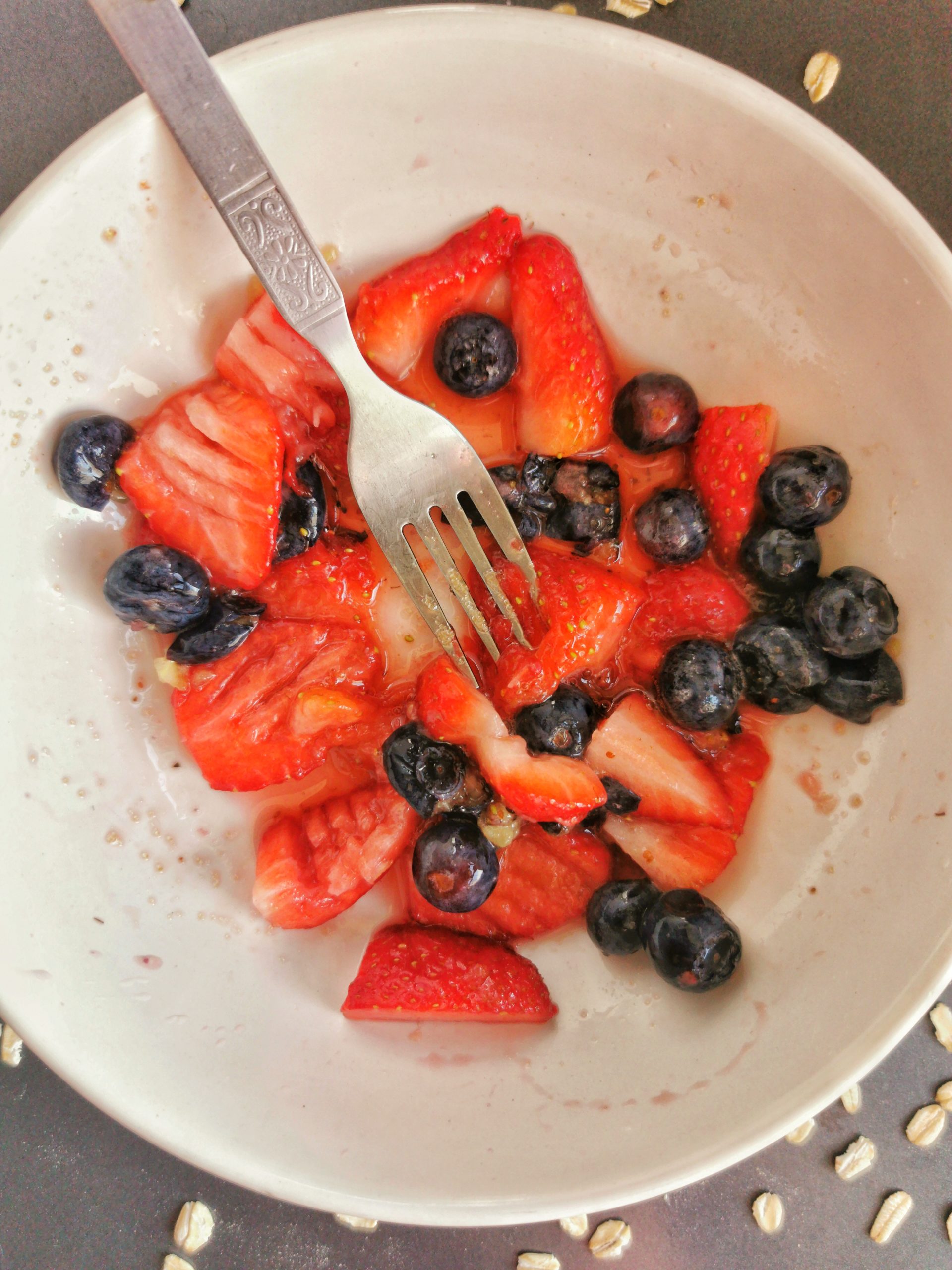 - Gently smash the berries with a fork.