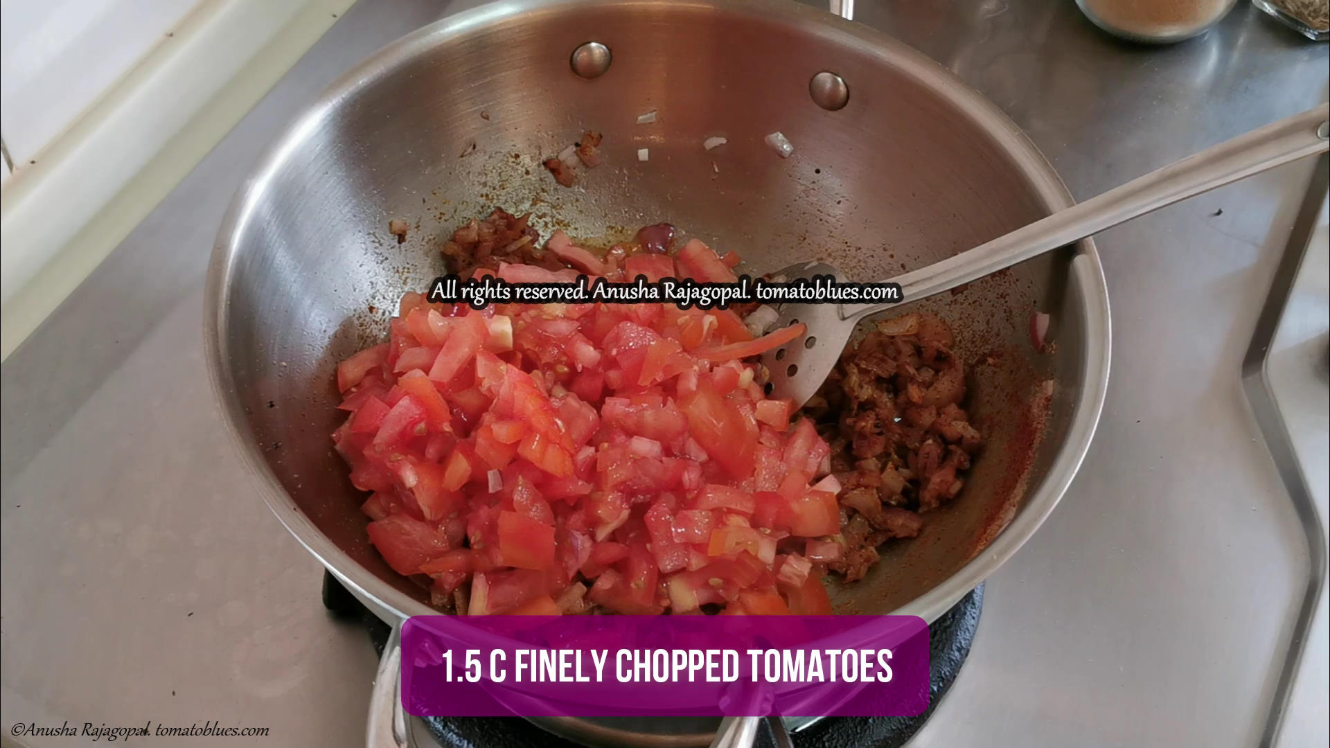 - 1.5 c Finely chopped tomatoes Approximately 4 medium size tomatoes