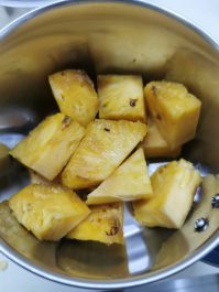 Combine the pineapple chunks with 1 cup water and blend till smooth. Set aside.