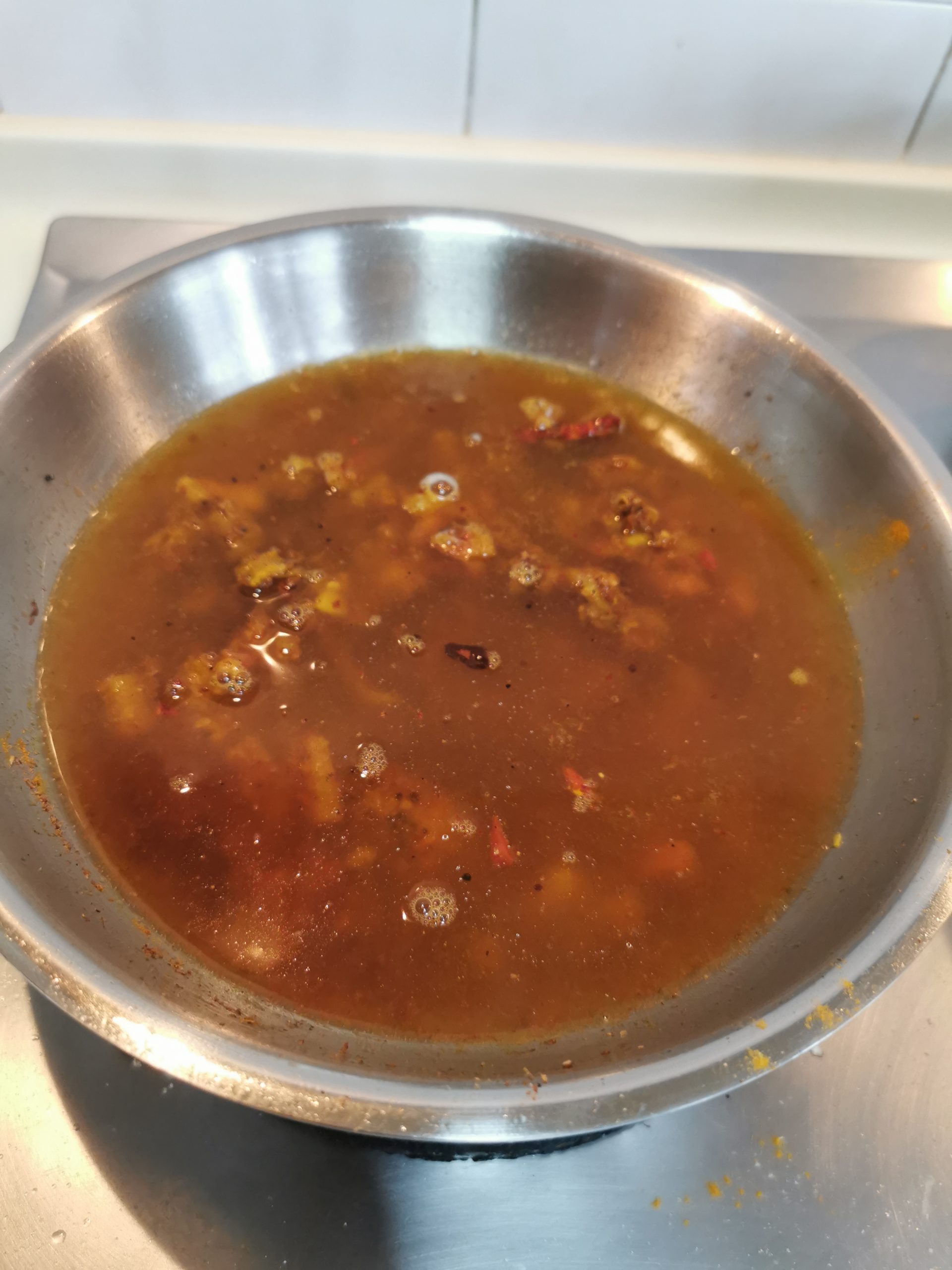 - When done, add the dry red chili and quickly saute for 20 to 30 secs.