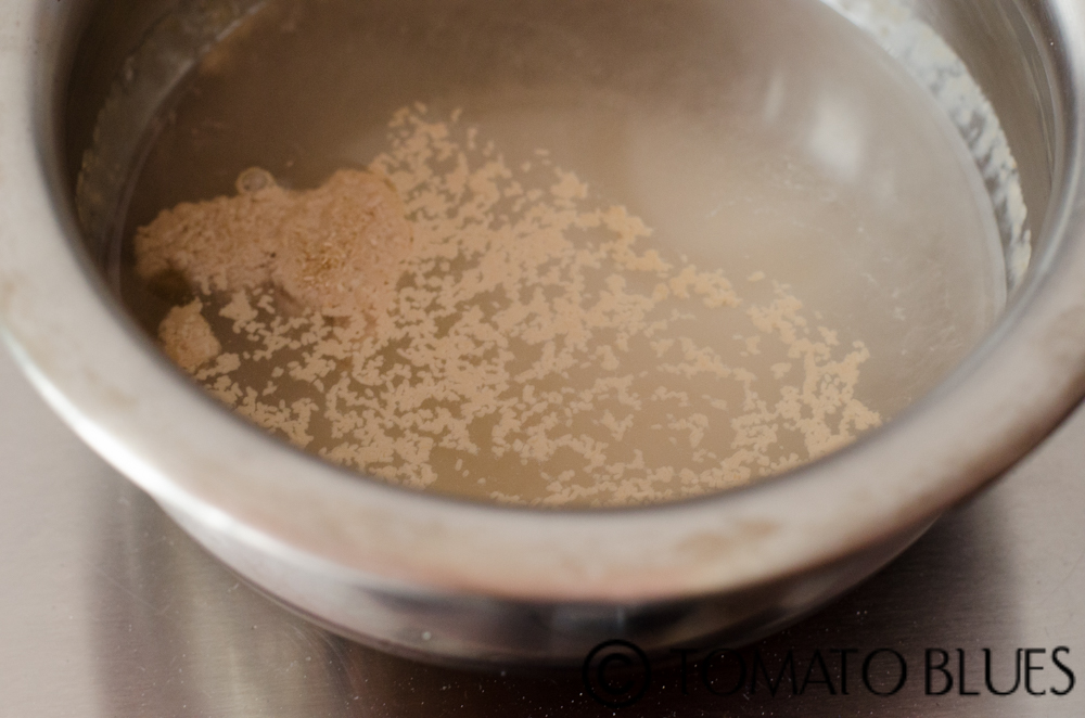 - Add water little by little and knead into a soft, smooth and sligthtly sticky dough.