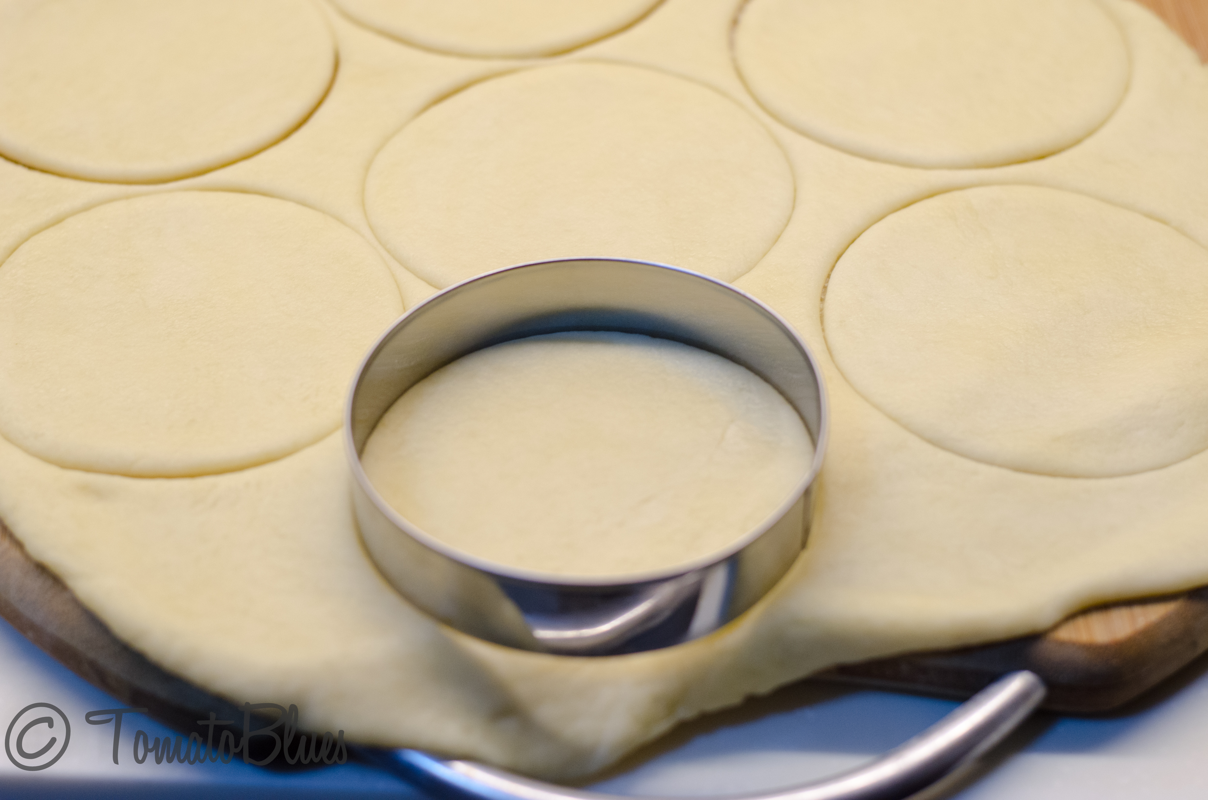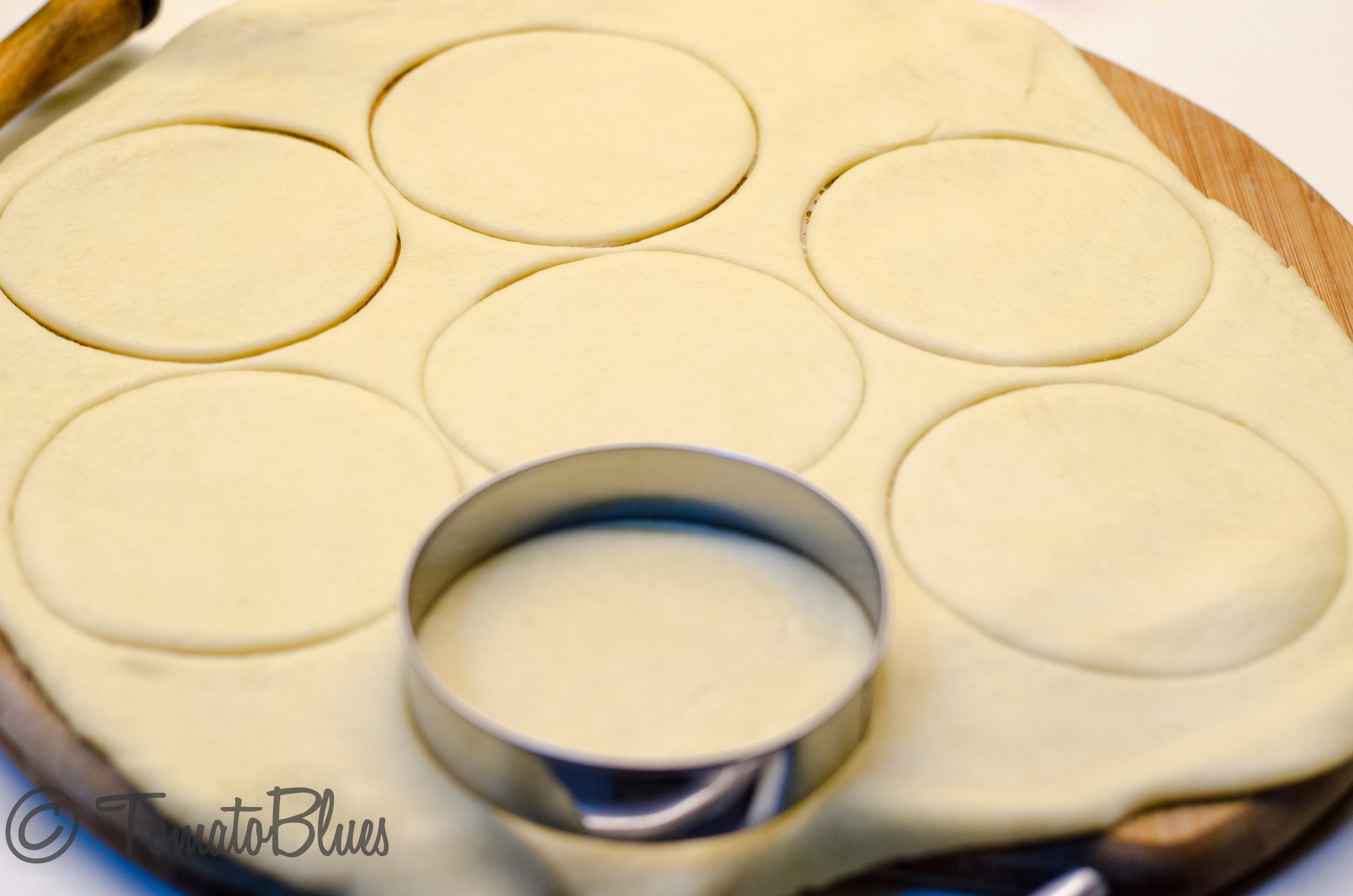 - Grease your palm and gently press the dough ball into a flat disc on your palms.